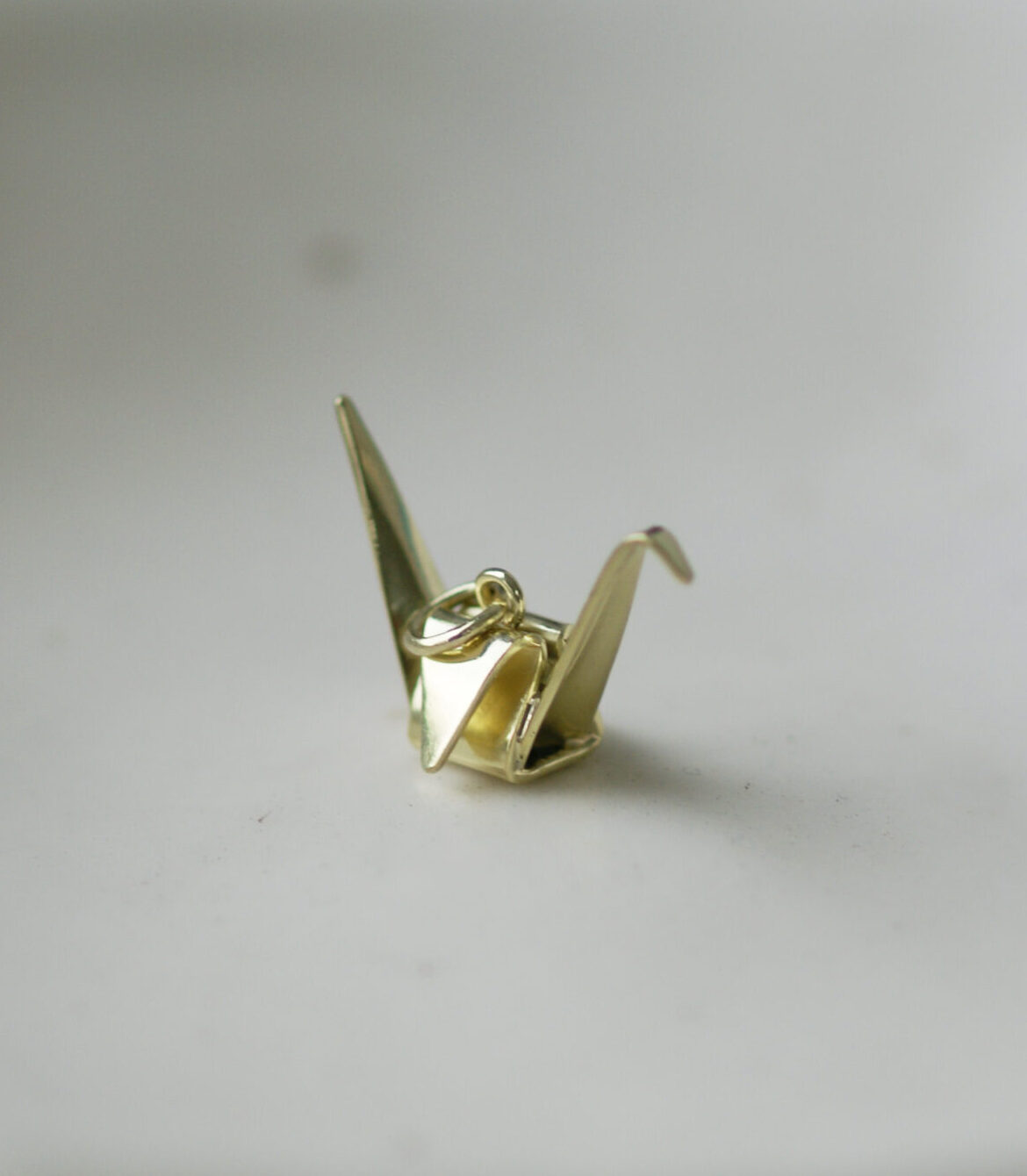 Pingente todo confeccionado à mão com dobraduras no metal, como o próprio origami.